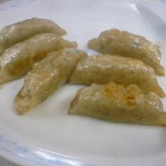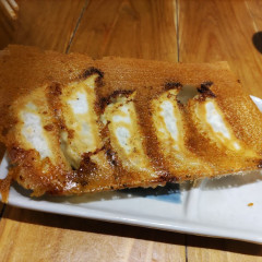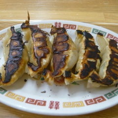 メニューの画像は基本?の10ケで よくある円形に焼かれていましたが 半の5ケはな羽根付き仕様でお目見え、 これは嬉しい誤算で楽しめますね。 焼き加減は申し分無し、餡もしっかり 食感を覚える程度が好ましいですね。 寧ろ何も付けなくても良いだろう味、 この餃子もかなりの高水準です。